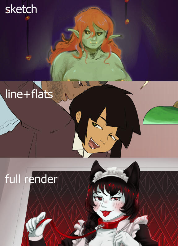 Payment is done in full once the commission is accepted via Paypal invoice. If you are unable to use Paypal due to country restrictions, let me know and we can work something out. If you change your mind before I am done with the art, you will recieve a partial refund based on how much of the piece I've completed. Finished pieces are not eligible for refunds.I will send frequent updates as more of the piece is completed. If there's something you don't like, please tell me as soon as possible so I can fix it! If you want a different pose, expression, or background from the one in sketches, you need to tell me early or I will be unable to fix it. Once the piece is complete, I will not do major revisions.I will not draw the following: loli/shota content, underage content, real people (unless granted explicit permission by said real person), incest of any kind, farts (scat and urine are fine i just don't wanna draw farts. idk man), feral animals. Feel free to request anything else!When commissioning me, please have at least one reference ready. This can be a Picrew, a drawing from another artist, or even a collage of photos that show your character's outfit, body type, skin color, etc. I'd prefer if the reference is not AI-generated, but something is always better than nothing.You may not use commissioned works for AI generation of any kind. For AI generation, this includes img2img, using it to train style/character models, etc.You must credit me if the commission is shared in any public setting. This includes use in icons, header images, videos, posts on forums/social media platforms/etc.